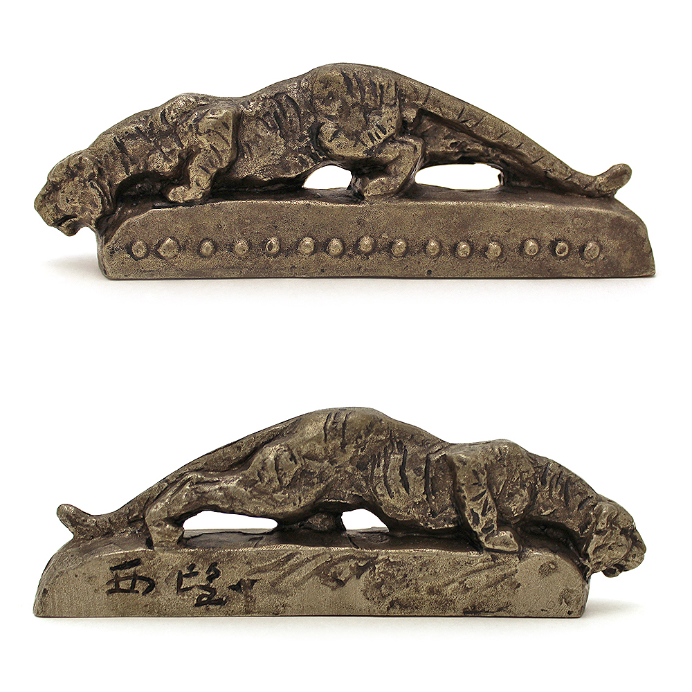 北村西望(きたむら せいぼう) いかるがの王子 ブロンズ像&洋銀 虎視眈々 虎 文鎮 置物2点セット 人間国宝 彫刻家