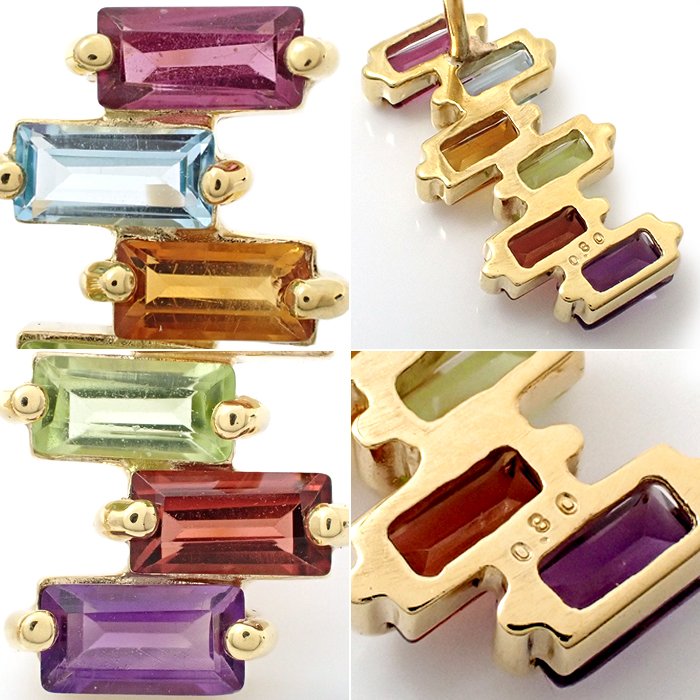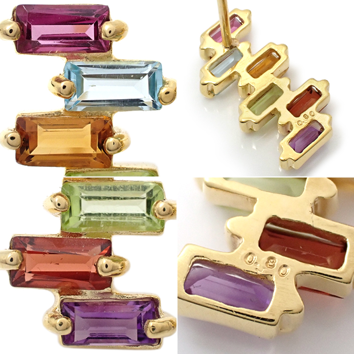 K18 マルチストーン ピアス 6石 イエローゴールド