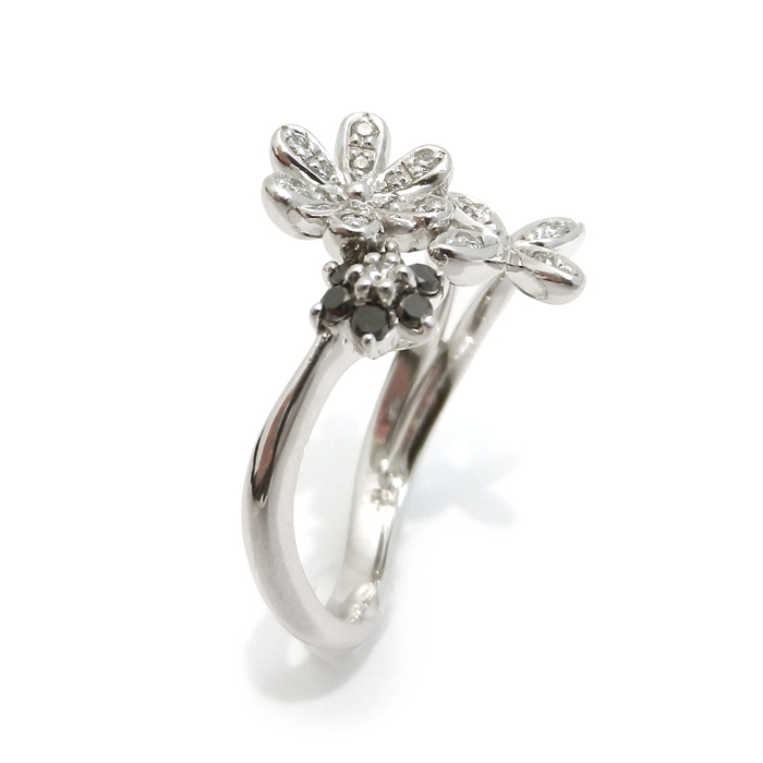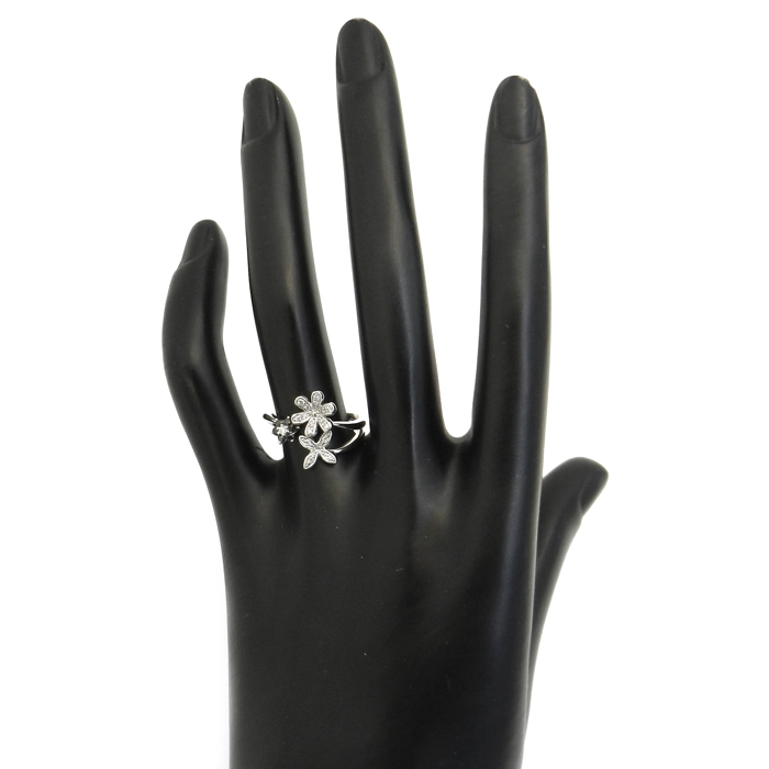 K18WG ブラックダイヤモンド 指輪 フラワーモチーフ 13号 新品仕上げ済 ホワイトゴールド
