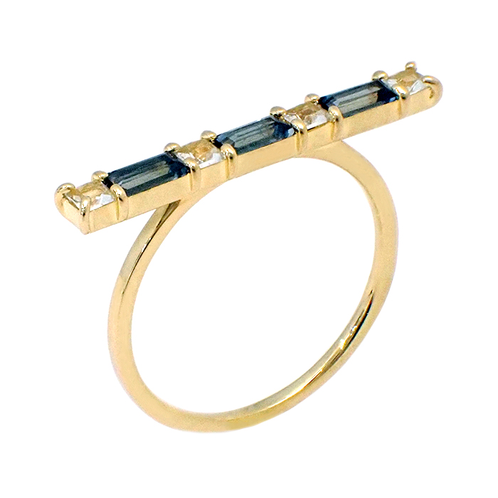 エテ(ete) K10 ブルートパーズ 指輪 11号 7P ライン リング イエローゴールド