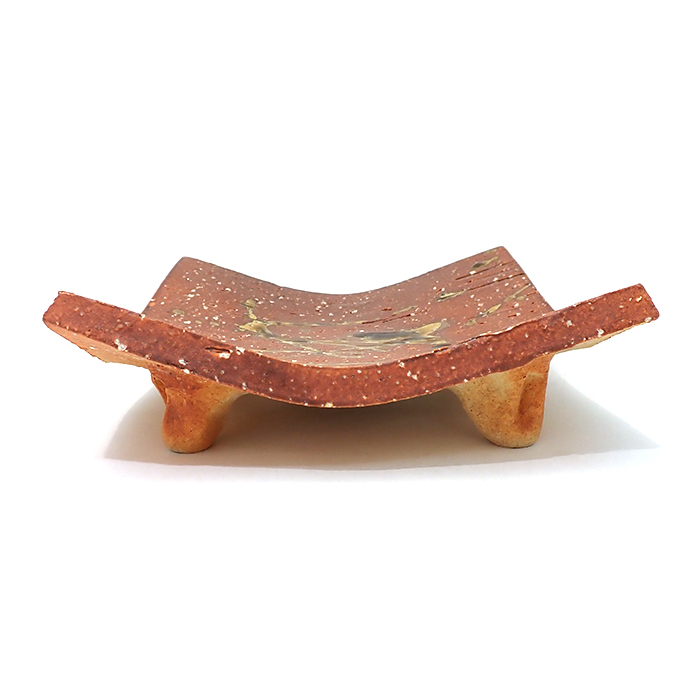高橋楽斎(たかはしがくさい) 信楽焼 四方皿 四足脚 角皿 盛り皿 和食器 布・共箱付き ブラウン