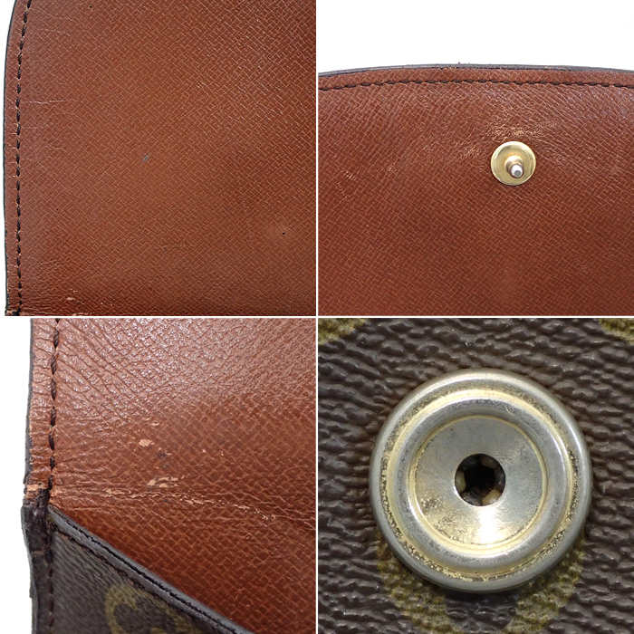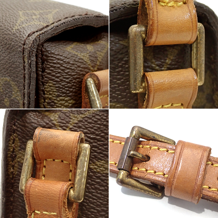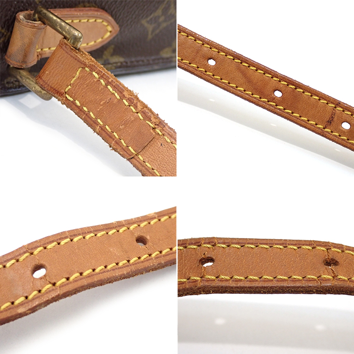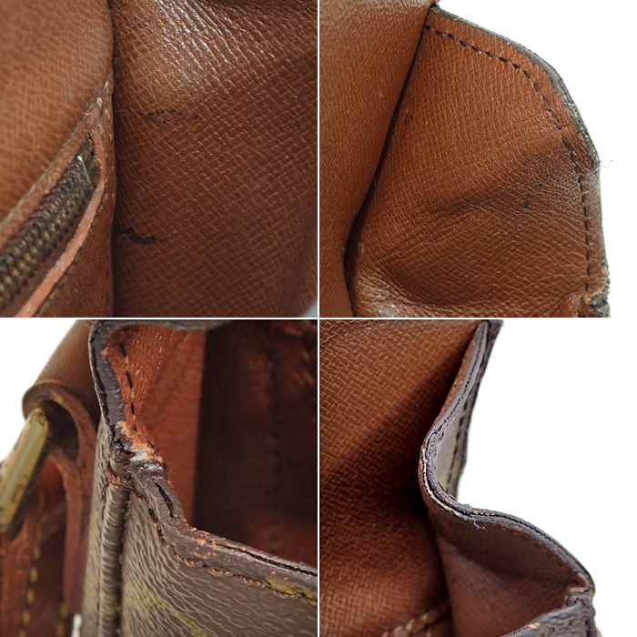 | 状態 | ・全体的にコバ割れがあり、内側には傷や汚れがあります。 ・ショルダーやヌメ革部分には、ヤケや変色、汚れ、傷、スレ、シワ、割れなどの使用感があります。 ・金具には傷やくすみ、メッキ剥がれ、変色、錆が見受けられます。 |