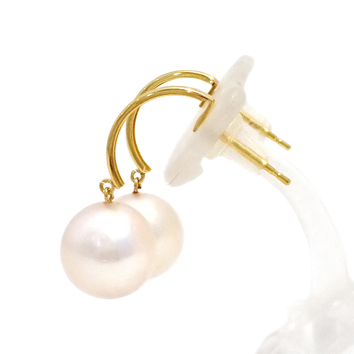 | 詳細 | パール:約9.0mm 重量:2.7g スタッドピアス(キャッチ式ピアス) ※パールには10倍のルーペで確認できる天然特有のエクボや僅かなスレなどがあります。 ※K18には僅かなくすみなどがあり、ポストの高さ(位置)が左右で若干異なります。 |