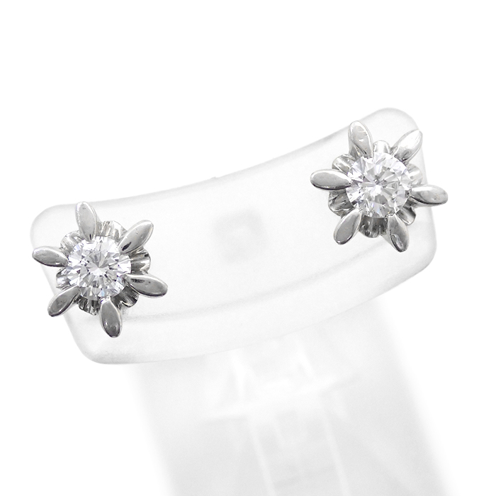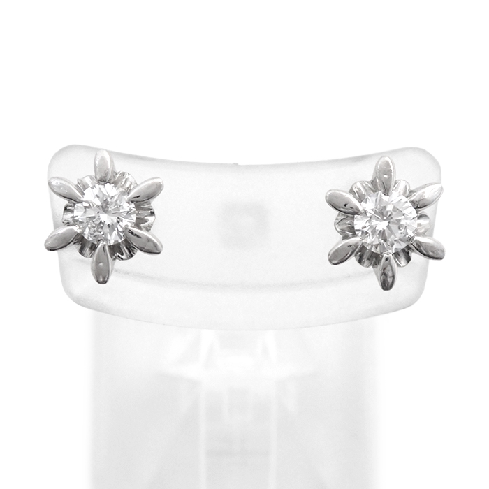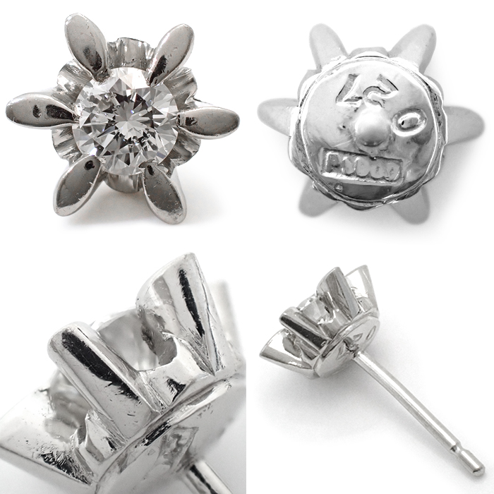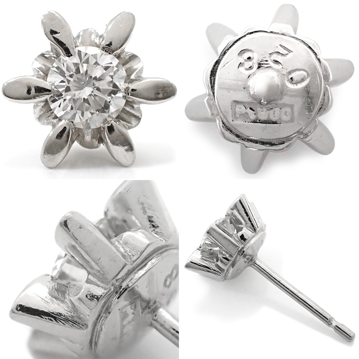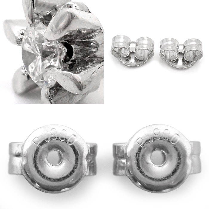 Pt900 ダイヤモンド 立爪 ピアス 一粒 シルバーカラー