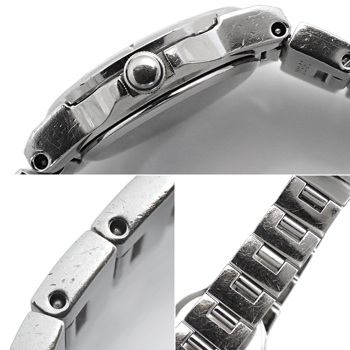 | 状態 | ステンレススチール全体に傷や打ち跡・くすみ・汚れがあり、風防には小傷や汚れ、文字盤にゴミの混入などがあります。 |