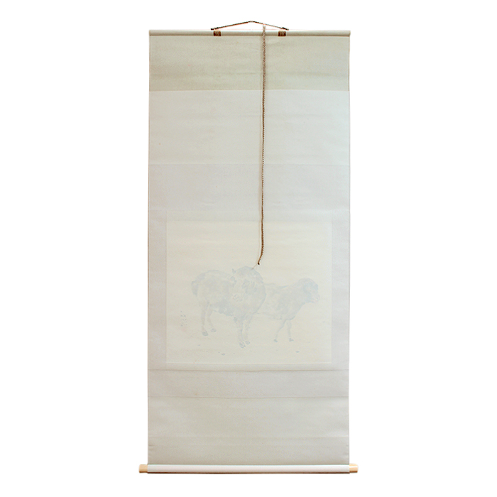 小林五浪(こばやしごろう) 「優風」 掛軸 ひつじ 羊 日本画 箱付き