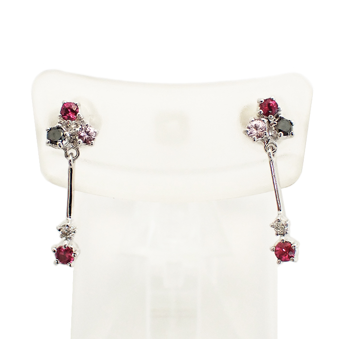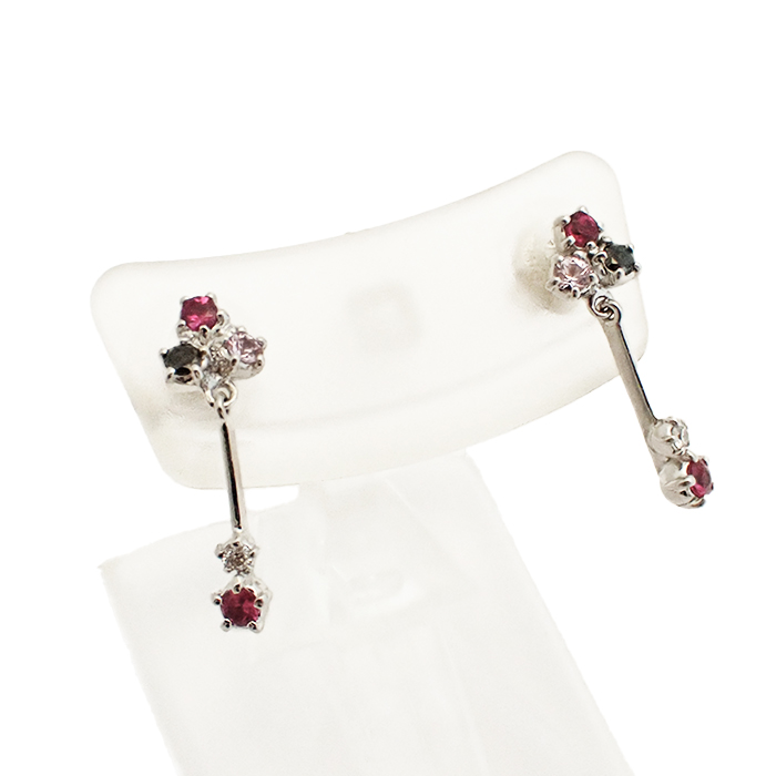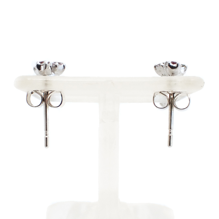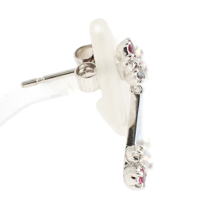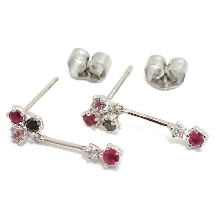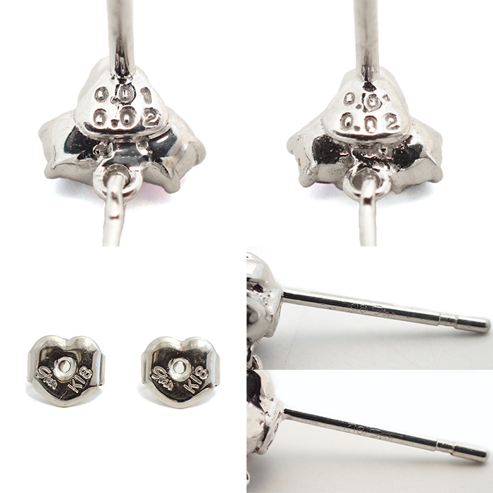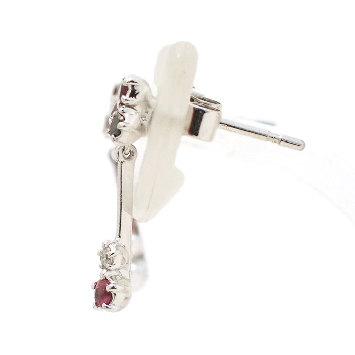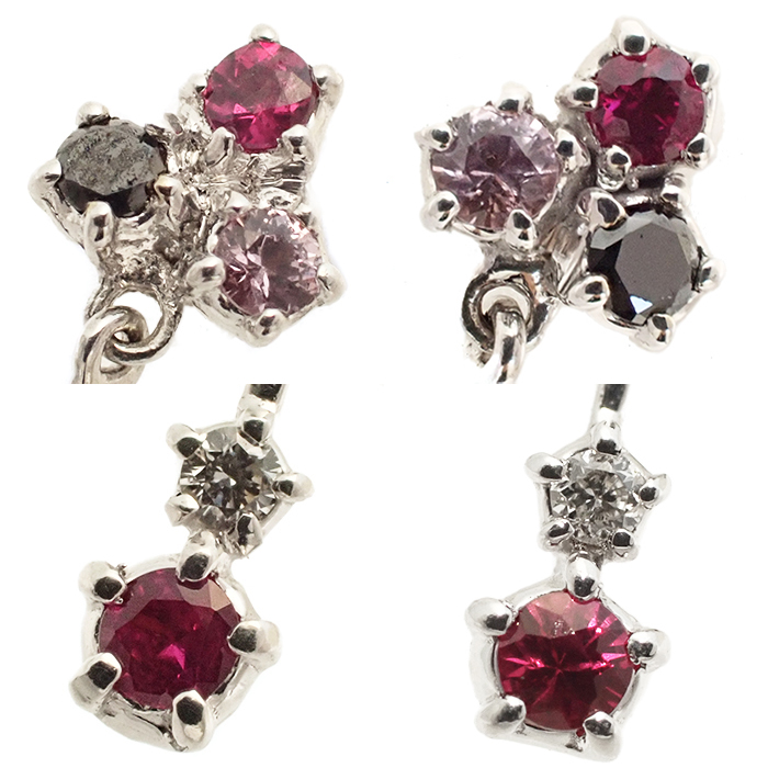 詳細 | ルビー:0.02ct×2 ダイヤモンド:0.01ct×2 重量:1.5g スタッドピアス(キャッチ式ピアス) ※宝石には10倍のルーペで確認できる天然特有のインクルージョンがあります。 ※K18WGには僅かな小傷やくすみがあります。 |