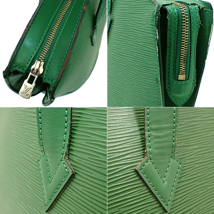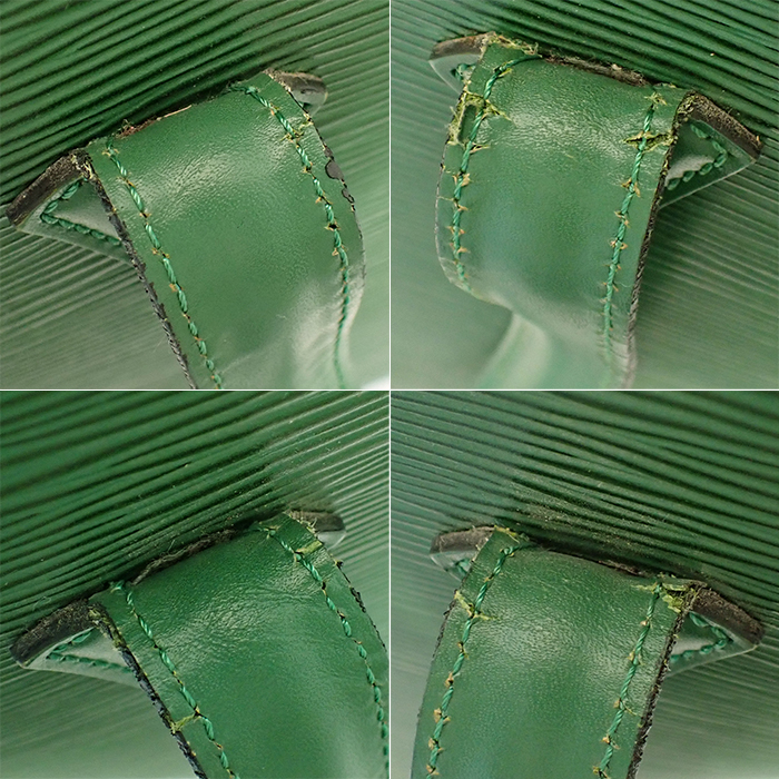 状態 | 外側やショルダーには傷・スレ・汚れ・コバ割れ・コバに色写り等があり、金具には小傷・メッキの剥がれやくすみがあります。また、正面下部分には凹み、背面部分には劣化による色むらがあります。 |