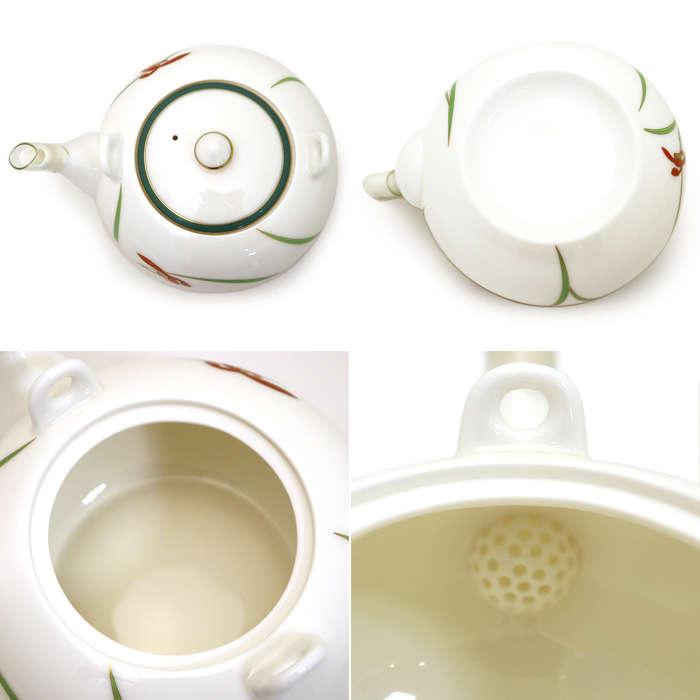 状態 | 未使用品ですが長期保管の為、ごく僅かな底汚れやスレ・金彩に変色、製造時からの色飛びなどがあります。 また、急須の持ち手部分の塗装剥がれや傷などがあります。 ※付属の箱には汚れやシミ・ヤケ・テープ跡などがあります。 |