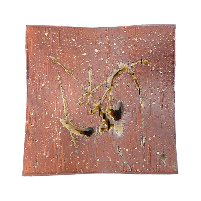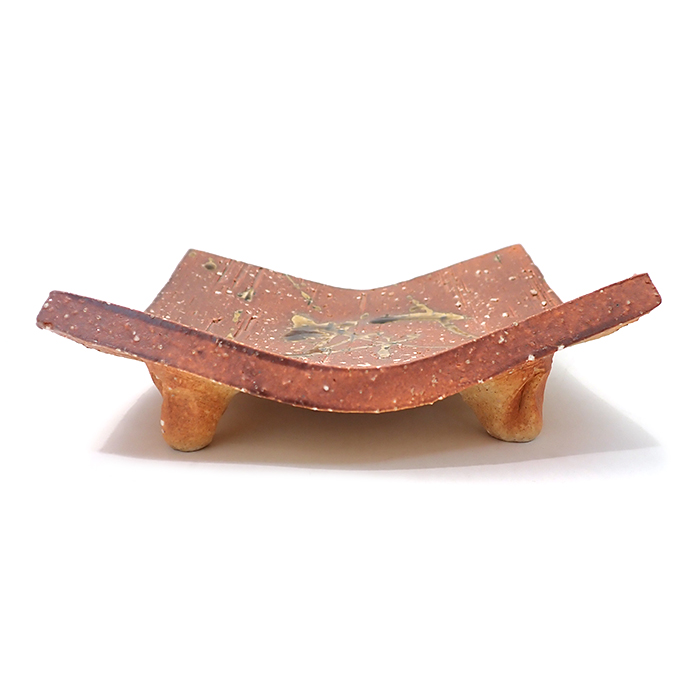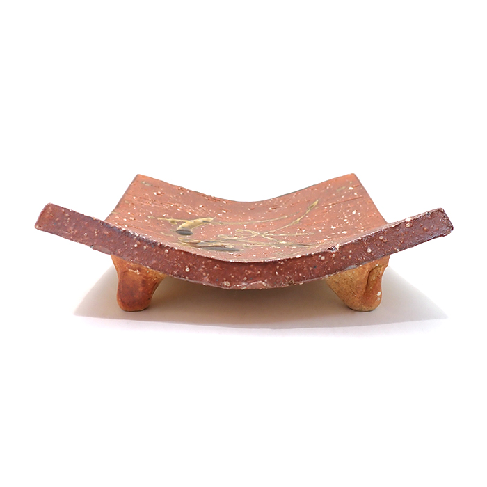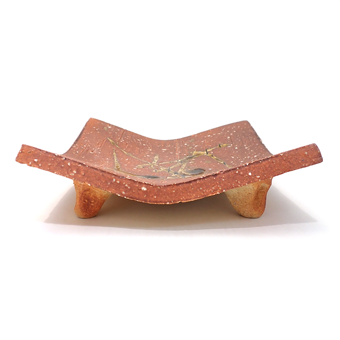 高橋楽斎(たかはしがくさい) 信楽焼 四方皿 四足脚 角皿 盛り皿 和食器 布・共箱付き ブラウン