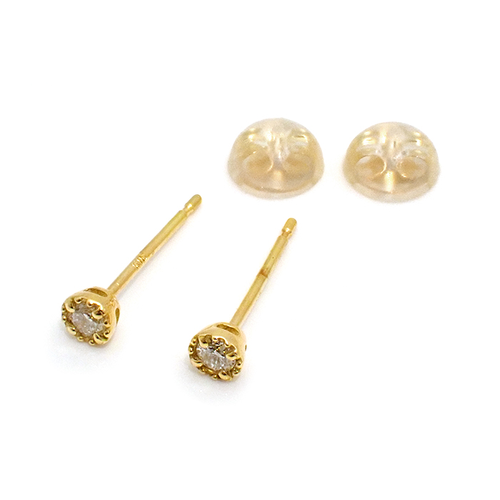 詳細 | ダイヤモンド:0.05ct×2 重量:0.5g スタッドピアス(キャッチ式ピアス) ※ダイヤモンドには10倍のルーペで確認できる天然特有のインクルージョンがあります。 ※K18には、くすみ・変色・僅かな小傷があります。 ※画像の色の見え方は、お使いのモニターやディスプレイによって異なります。 |