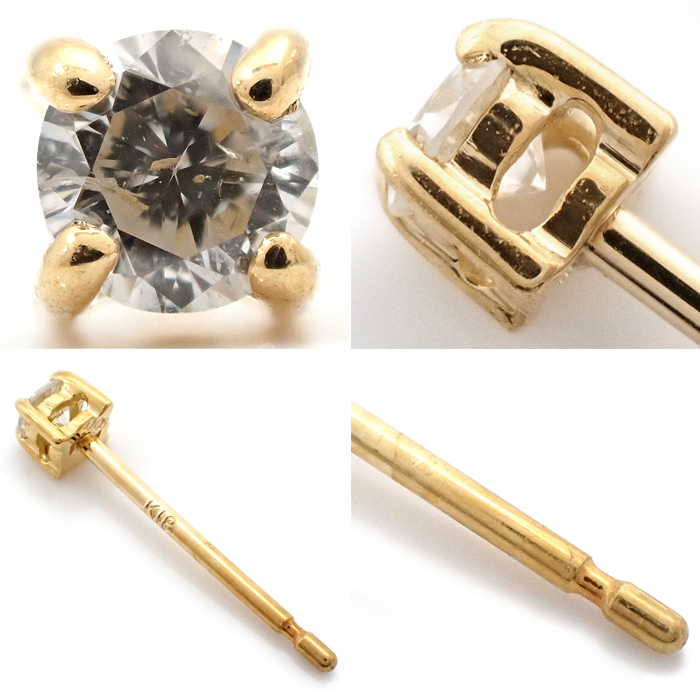 詳細 | ダイヤモンド:0.05ct×2 重量:0.5g スタッドピアス(キャッチ式ピアス) ※ダイヤモンドには10倍のルーペで確認できる天然特有のインクルージョンがあります。 ※K18に僅かな小傷やくすみ・変色があり、ポストには歪みがあります。 ※画像の色の見え方は、お使いのモニターやディスプレイによって異なります。 |