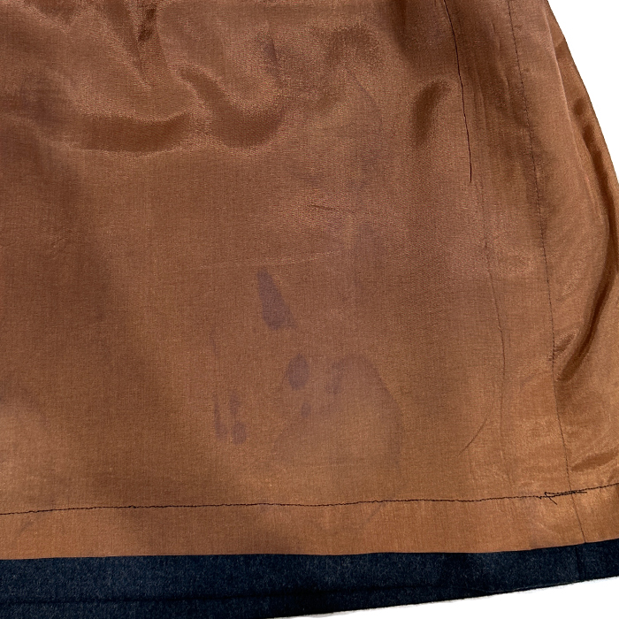 | 状態 | ・表地は多少の毛羽立ち等ございますが、比較的綺麗な状態です。 ・裏地には全体的に大小のシミ汚れ等がございます。 ・バックル、ベルトレザー部分には多少の小傷がございます。 |