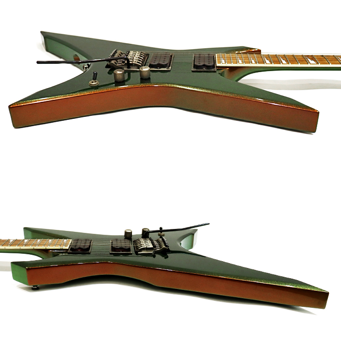 | コメント | 個性的な変形ボディは見る角度によって色が変化します。 Dimarizo製ピックアップが搭載してあります。 |