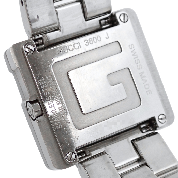 グッチ(GUCCI) 3600J 腕時計 アナログ Gロゴ スクエアフェイス ブラック文字盤