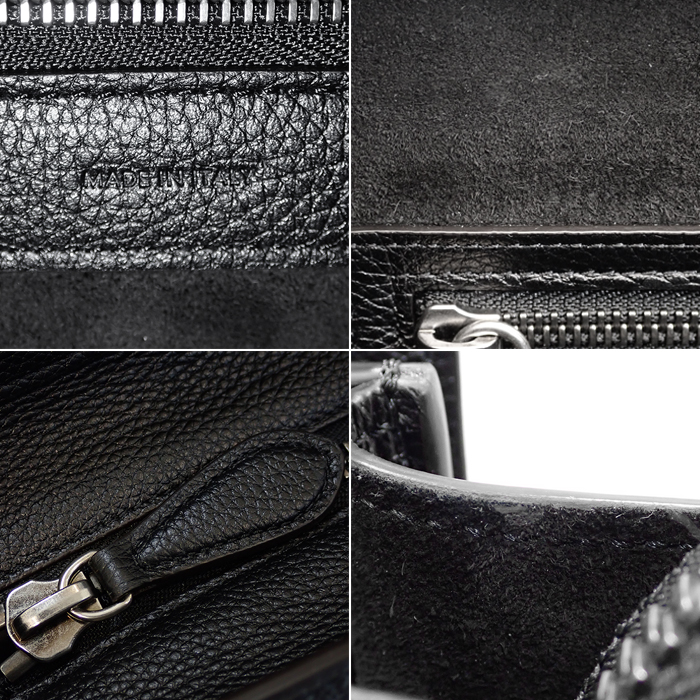 | 詳細 | 開閉式:ファスナー開閉 内側:ファスナーポケット×1/オープンポケット×2 持ち手:約42cm 底ビス:4 イタリア製 ※画像の色の見え方は、お使いのモニターやディスプレイによって異なります。 |