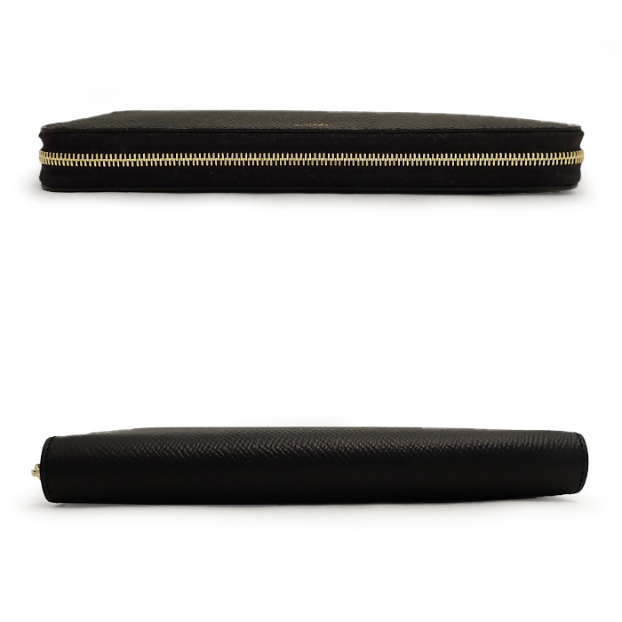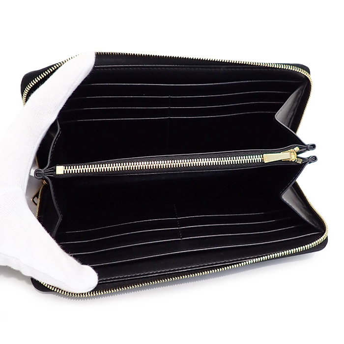 | 詳細 | カラー:ブラック 金具:ゴールド ファスナー開閉式 内側:札入れ2/オープンポケット2/小銭入れ1(ファスナー開閉式)/カード入れ12 ※新品同様の綺麗な状態ですが、レザーにはごく僅かに小傷・押し型、金具には小傷・くすみなどがあります。 ※画像の色の見え方は、お使いのモニターやディスプレイによって異なります。 |