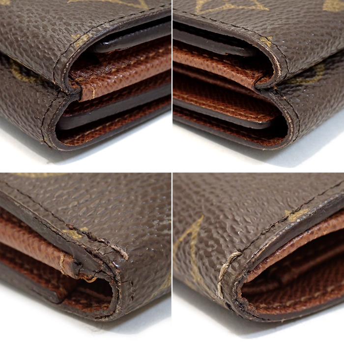 | 状態 | コバに割れやスレ、糸のほつれが見られます。 内側には押し跡やわずかな剥がれ・小傷、金具部分に傷やくすみなどがあります。 ※店頭展示品の為、多少の擦れ・小傷・汚れなどがつく場合があります。 |