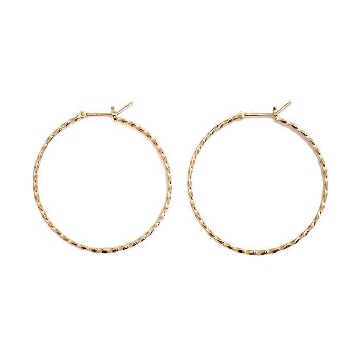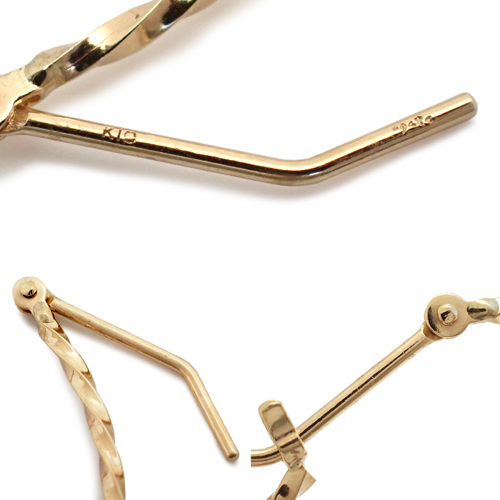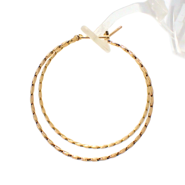 アガット(agete) K10 フープピアス スクリュー 螺旋 ツイスト ゴールドカラー