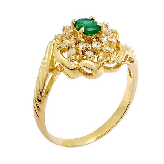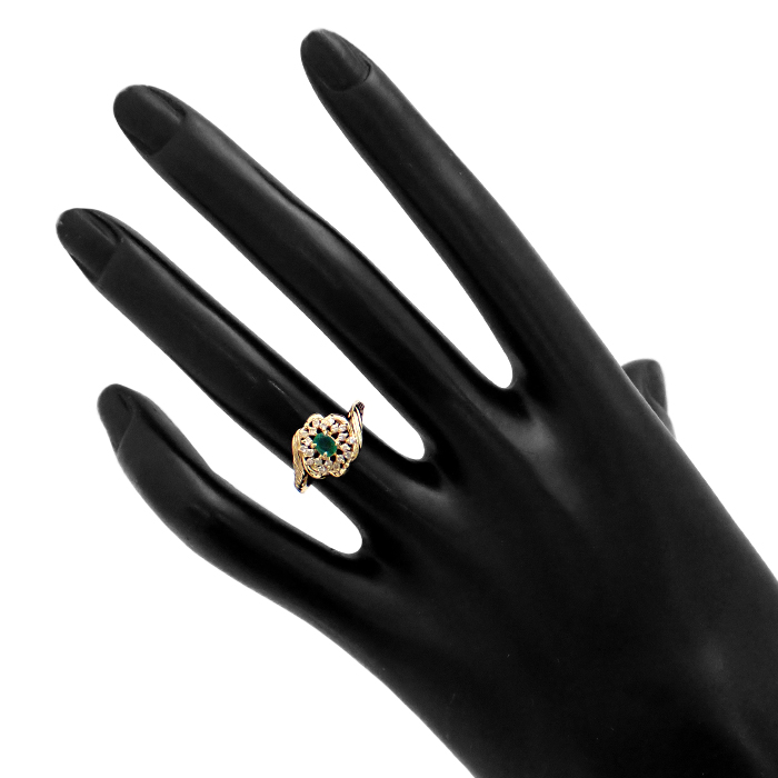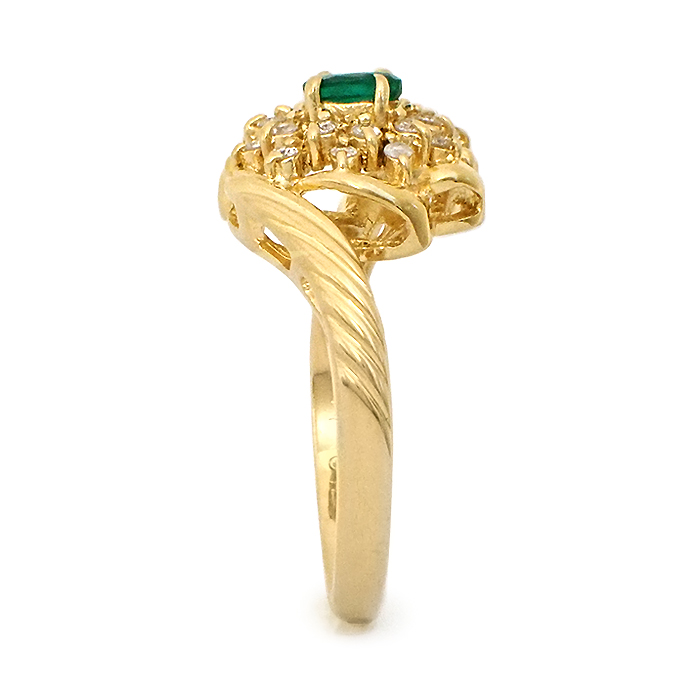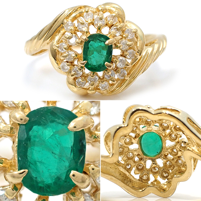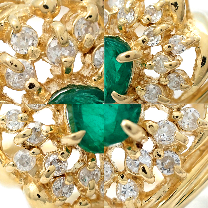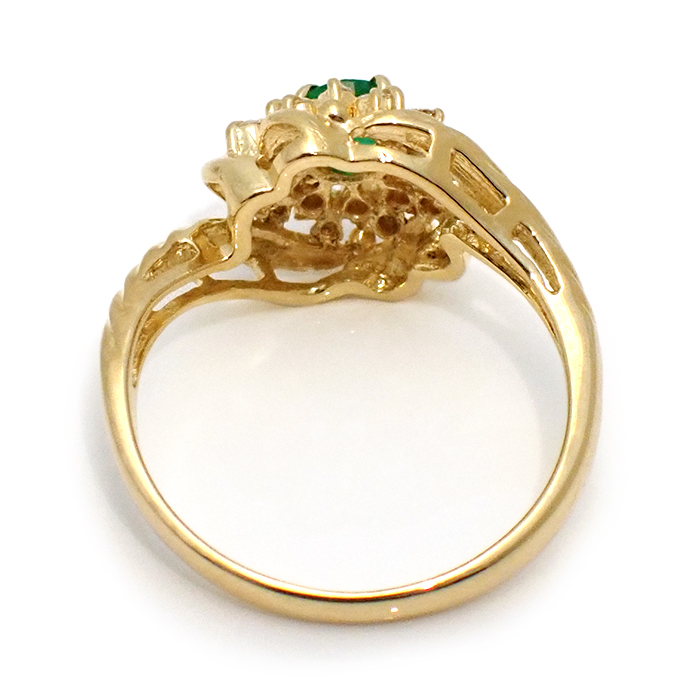 K18 エメラルド・ダイヤモンド 指輪 9号 リング 花 フラワーモチーフ ゴールド